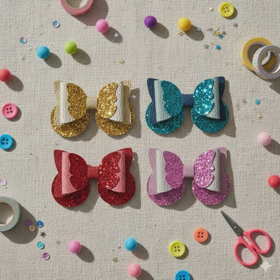Butterfly Hair Bow PU Leather | 85mm Pebble & Glitter Design with 60mm Alligator Clip