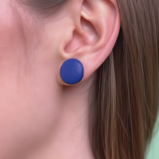Leather Stud Earrings – Round Button Style, 14mm Handmade Jewellery